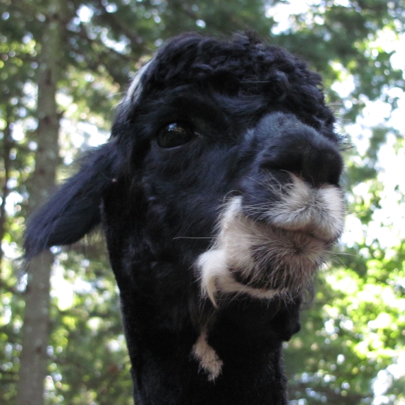 Temperment: very sweet Color (phenotype), Gender: non-fading true black and white adult male Color (genotype): true black / true black, white spot gene Breed: Huacaya ARI#: 31866804 Sire: Othello's Running Bear Dam: TKA Zoey Ancestors with 40 or more registered offspring, as of October 2010 (generations back): Pperuvian Guellermo G4546 (4), Peruvian Camilio G4561 (4), Peruvian Ion S221 ALOA (3), Peruvian White Out (5), C4 Merrill G211 (4), Peruvian Fuego G226 (5), SA Karrington (5), Ppperuvian Dante (4) Fiber description: Strong fiber. Nice handle, with an intriguing cool slick feel, and exceedingly bright (see fleece photo!). Fiber stats: